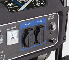 - AVR: автоматичний регулятор напруги гарантує роботу генератора без перевантажень і не допускає появи стрибків напруги.