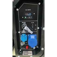 ![]() | Панель управління: інтуїтивно проста, доступна недосвідченому користувачеві. На ній виведені: кнопка запуску генератора, основні показники роботи (вольтметр, лічильник відпрацьованого часу (мотогодини)), розетки - 2 шт., клеми на 12В для зарядки акумуляторів, запобіжник на розетки, заземлення. |