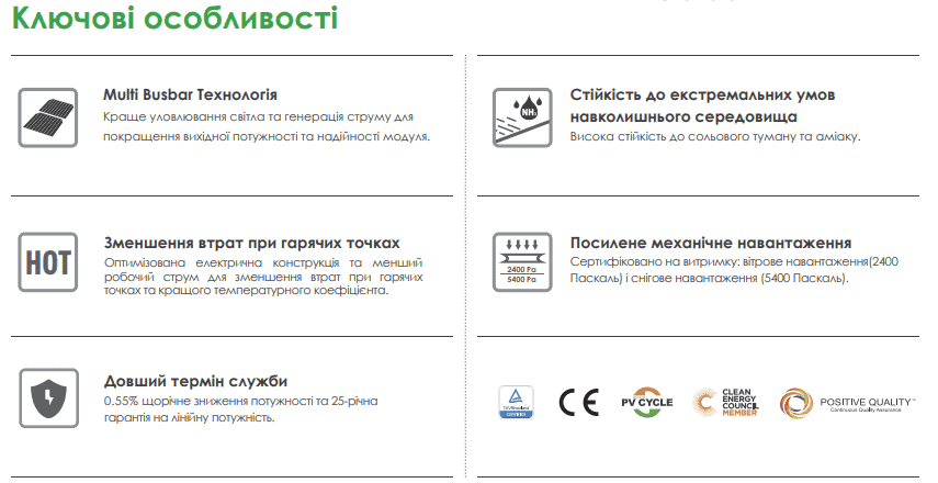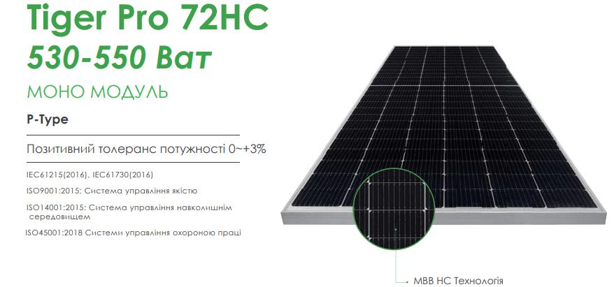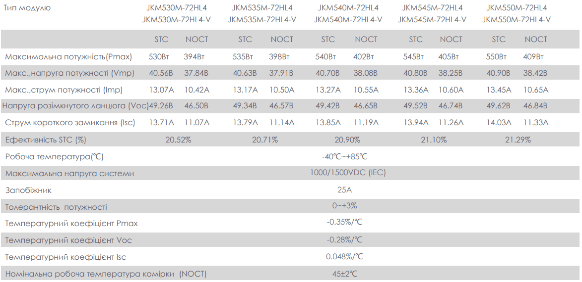 Новітні технології, які використовуються у модулях JKM-550M-72HL4-V, дозволяють підвищити ефективність та мінімізувати вплив мікротріщин та затінення панелі.