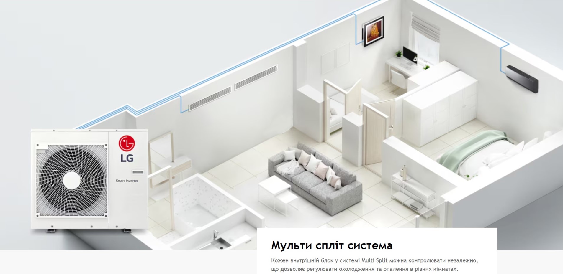 Обравши мульти-спліт систему LG, ви отримуєте зручне та стильне рішення для охолодження та обігріву вашого дому чи офісу.