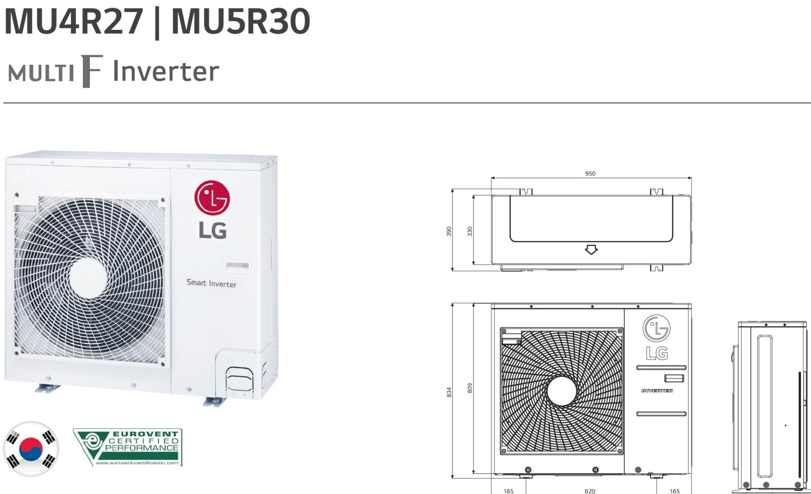 Зовнішній блок мульти-спліт системи LG Multi F MU4R27.U40 протестований на кращому у світі випробувальному обладнанні та відповідає всім стандартам, сертифікатам та рекомендаціям компетентних органів галузі, включаючи Eurovent.