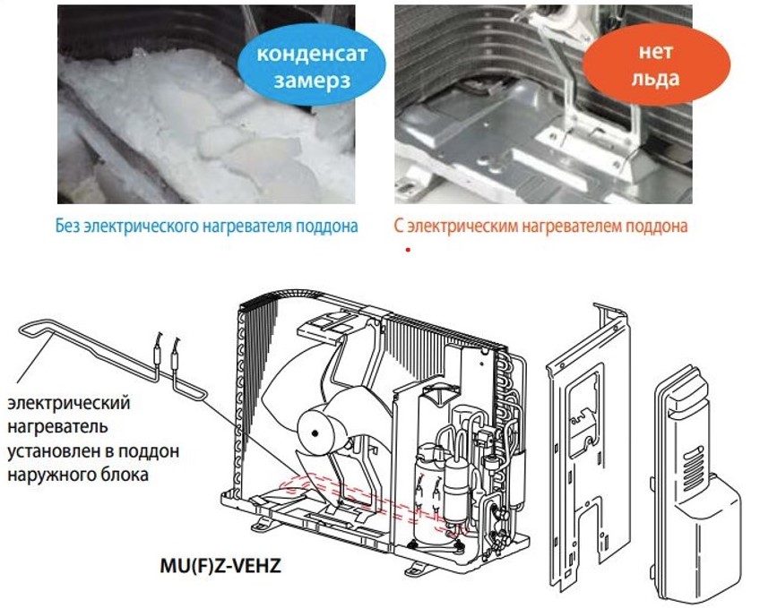 Для всіх кондиціонерів актуальна проблема обмерзання зовнішнього блоку під час роботи на обігрів. У цьому випадку підвищується навантаження на обладнання, а продуктивність істотно падає. Компанія Mitsubishi позбавила власників кондиціонерів серії "Zubadan" від цієї неприємності, оснастивши піддон зовнішнього блоку підігрівом. Японською мовою "Zubadan" позначає «супер обігрів».